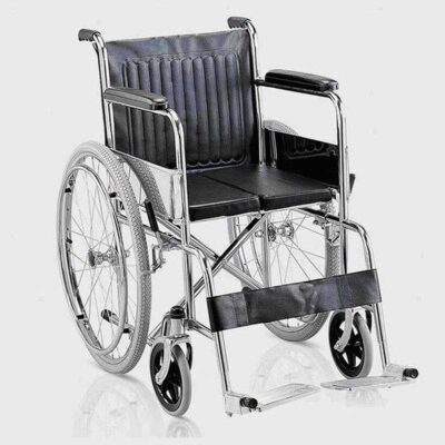 Seat with a soft cushion. 23-inch rear wheels allowing individuals to self-propel. Eight-inch front castors. Padded armrests for maximum comfort. Available only in Chennai.